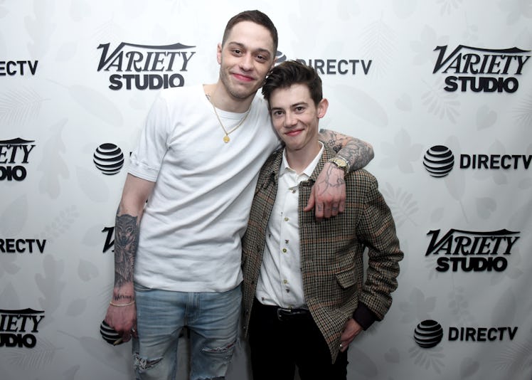 Pete Davidson's self-deprecating, directionless, stoner-boy humor is coupled with Griffin Gluck's quiet sophomore-in-your-math-class innocence in Jason Orley's Big Time Adolescence. The film stars Davidson as Zeke, a 23-year-old high school hero who's still clinging to his glory days, and Gluck as the 16-year-old Moe who idolizes him. As his protégé, Moe blindly follows Zeke's alcohol and weed-infused lead, landing him in obvious trouble. On-screen, Zeke and Moe's relationship is ultimately toxic, but, according to Gluck, he and Davidson's Big Time Adolescence relationship carried off-screen in a "fantastic" way.