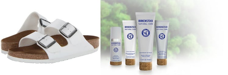 The products are coordinated into five treatment categories. "Naturally Fresh Cleanse" will offer products for your body, skin and hair (it will also feature an enzyme peel). "Naturally Ageless Repair" boasts moisturizing face, hands and body products, while the "Naturally Pure Prevent" line includes hyaluron-infused face, lip and body care products. There's even a category for the men in your life (so they don't feel left out) called "Natural Man Refresh." And perhaps most obviously Birkenstock is offering products for our feet.