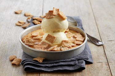 To kick off the one and only National Cereal Day on March 7, BJ's Restaurant & Brewhouse will release their innovative ode to '90s babies everywhere, known as the Cinnamon Toast Crunch Cereal Pizookie. If you aren't familiar with this delicious work of art, it features a buttery sugar cookie base, which baked in its own deep-dish pan, according to the press release. Then, it's topped with a hefty helping of vanilla bean ice cream, before getting sprinkled in a handful Cinnamon Toast Crunch cereal and lastly, cinnamon sugar. It sounds straight-up heavenly, and 20 years ago, it definitely would have been my dream Saturday morning snack.