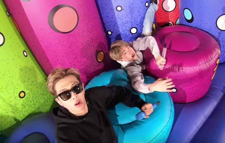 Question: What's more fun than a BTS concert? Answer: A BTS concert on a giant moon bounce stage with GoPro cameras. Obviously. What did you think I was going to say? On Tuesday, June 4, your favorite idols dropped a super fun video as a gift to all ARMYs who are following BTS FESTA and it's worth a watch. BTS' "Anpanman" FESTA music video is different than other produced music videos you might be accustomed to when it comes to this group, but the pay off is just as much fun. Not for nothing, RM wears sunglasses, which makes it that much better for me. (Hi. My name is Jamie. And, I am RM biased.)