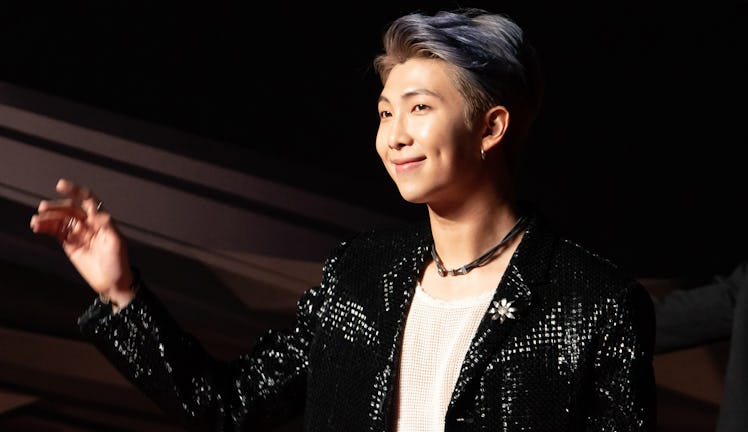 I think we can all agree that BTS is the biggest boy band in the world right now. The K-pop superstars are dropping their new album, Map Of The Soul: Persona, on April 12. They're set to appear as musical guests on Saturday Night Live on April 13, and fans will most likely get to hear their new single "Boy With Luv." And following the SNL gig, the boys will head back to South Korea for more promo before returning to the U.S. to kick off their Love Yourself: Speak Yourself stadium tour on May 4 at the Rose Bowl in Los Angeles. It's a lot, you guys! Luckily, the boys have had a strong and super talented leader at the helm from the get-go, one who's helped steer them as they barrel towards what can only be described as total world domination. And BTS' quotes about RM will make you understand why he's the right — and only — man for the job.