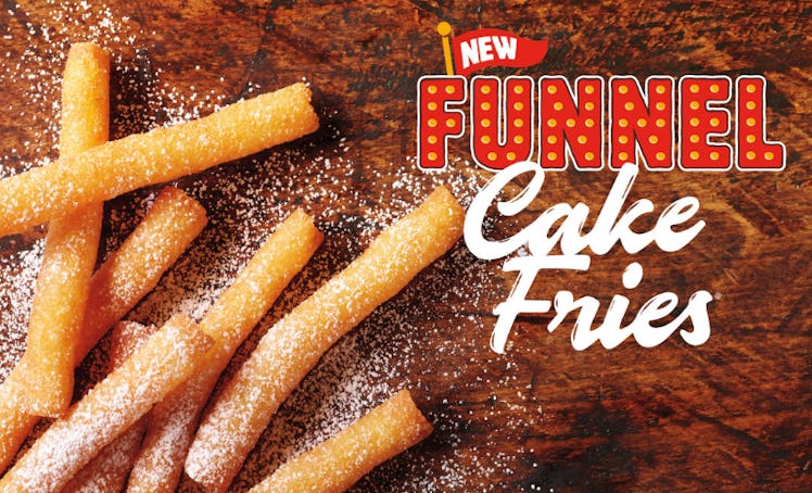 Burger King is continuing to make that mid-January slump a little sweeter, thanks to a few new menu items that will trick your tastebuds into thinking it's patio season. Following in the footsteps of the fast food chain's new M&M's Vanilla Shake, Burger King’s new Funnel Cake Fries with powdered sugar are here to help you eat like you're at a summer fair — even if you're planning on hibernating on your couch until spring. Forget sweater weather, because these crispy, golden fried nuggets of goodness are serving up some major theme park vibes that I can definitely get on board with.