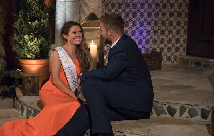 While touring her Virginia hometown with Bachelor Colton Underwood on Feb. 26's episode, Caelynn brightened at talk of their future together. Like all families suddenly pushed onto national TV, her parents were a little skeptical about the speedy dating process, but Colton still scored a blessing from Caelynn's stepdad. Before the visit was over, Caelynn even told Colton that she was "fully" in love with him. Speaking to the camera, she confessed, "I feel like it's us at the end of this. It feels good to be in love. I'm very happy, very excited."