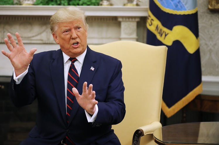 A few weeks ago on Sept. 24, Speaker of the House Nancy Pelosi announced she was opening an official impeachment inquiry into the president, and needless to say the public was shocked at the news. At the time, White House Press Secretary Stephanie Grisham told Elite Daily in an emailed statement that the inquiry was Democrats' way to "weaponize politics," and now it looks like the president is pushing back.
