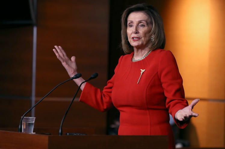 So what does that mean in Trump's case? As of right now, it looks like a state of limbo. On Dec. 18, the House voted to impeach Trump on two counts: abuse of power and obstruction of Congress. The White House did not respond to Elite Daily's request for comment on the vote, although President Trump has dismissed the impeachment proceedings as "invalid." Normally, the next step in the impeachment process would be for House Speaker Nancy Pelosi to transmit these two articles of impeachment to the Senate. The Senate would then be responsible for organizing an impeachment trial, over which Supreme Court Chief Justice John Roberts would preside. But after Wednesday's impeachment vote, Pelosi said she was considering a delay in transmitting the articles of impeachment to the Senate. She expressed concern that Republican leaders like Senate Majority Leader Mitch McConnell were not committed to a fair trial, and she said the House could not name managers to prosecute the trial until they could be sure of the Senate's conduct.