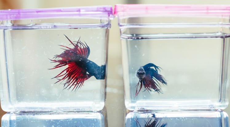 If you were to put two gorgeous fighting fish in a tank together (please don't, this is straight up psychopathic behavior, and YouTube is full of psychopaths) the first thing you'll notice is a blur of gorgeous colors circling one another. It looks like a beautiful dance, like West Side Story when the Sharks and the Jets snap-stalk each other into formation. The lack of contact allows them to move freely. Such freedom of movement allows both fish the ability to strike at any given moment.