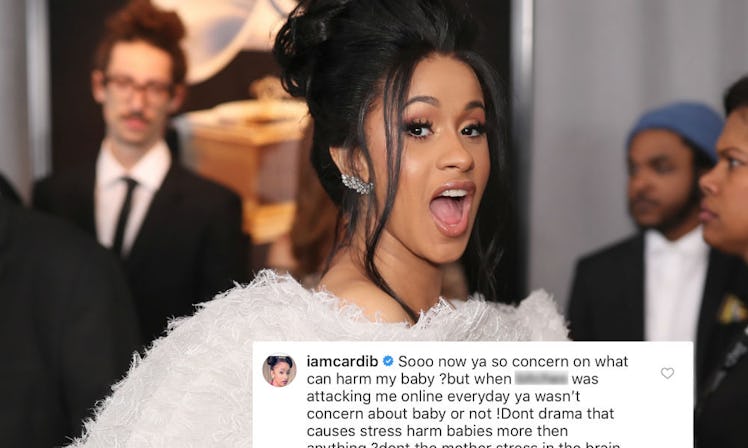 It's almost Cardi B baby season, y'all! The world has been waiting in anticipation to hear when the "Bodak Yellow" rapper's baby is due and with that excitement comes an unusual amount of attention on Cardi and her activities. Despite being several months along, it doesn't look like pregnancy has slowed the rapper down one bit, like, at all. Cardi B recently gave a fire performance at Coachella, slayed on the Met Gala red carpet, and has been spotted out in the club partying with her fiancé, Offset. Of course, haters are always going to hate. Cardi B's response to haters who criticized her for partying around smokers is intense, but I also wouldn't expect anything less when it comes to a Cardi B clap-back.