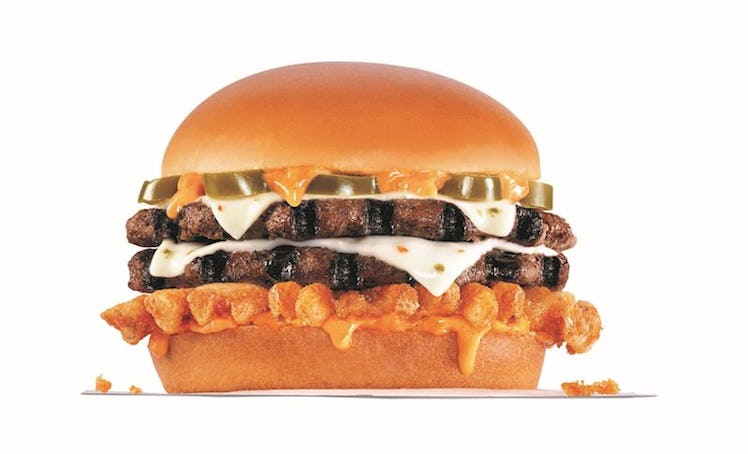 First, I'll talk about what's included on the exclusive cheeseburger. According to Carl's Jr., the Rocky Mountain High: CheeseBurger Delight features two charbroiled beef patties that are dressed with toppings that'll make your mouth water. Those toppings include pickled jalapeños, the company's iconic CrissCut Fries, pepper jack cheese, and of course, Carl's Jr. Santa Fe Sauce. As I previously mentioned, the Santa Fe Sauce is the burger's component that's infused with CBD. According to Carl's Jr., there is approximately 5 milligrams of CBD extract in each serving.