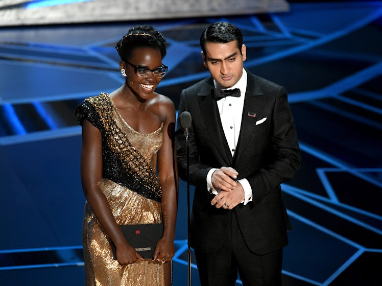 Some of the most iconic women in show business wore their glasses on and off the Oscars stage. Let's start with absolute queen Lupita Nyong'o, shall we? On the red carpet, Nyong'o shocked and awed us all with her metallic Grecian/Futuristic number and award-worthy hair. However, it was on stage as a presenter that Nyong'o truly took our breath away. Some presenters, like Tiffany Haddish, changed their outfits before presenting. Nyong'o only made on small adjustment: she added glasses. They were stunningly gorgeous glasses, to be exact, and complimented the geographic nature of her dress perfectly.