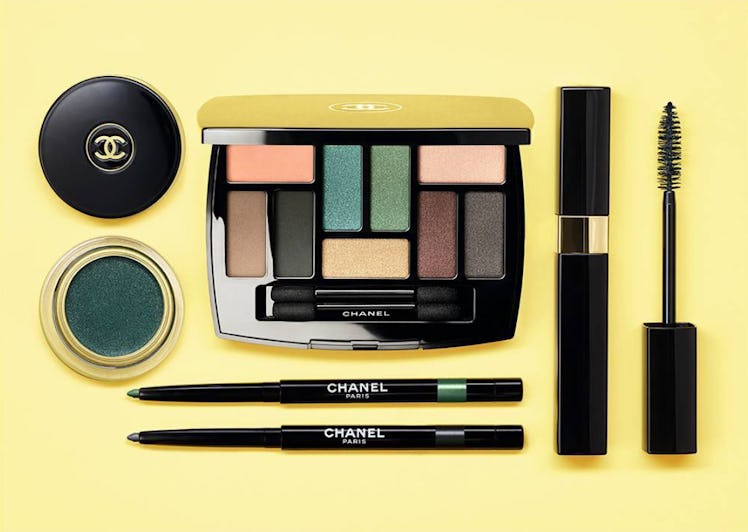 Chanel's spring eyeshadows and eyeliners are defined by a bold, shimmering teal hue. This is a darker than usual color theme for spring or summer from any brand, but there's plenty of brightness in the eyeshadow palette to liven it up.