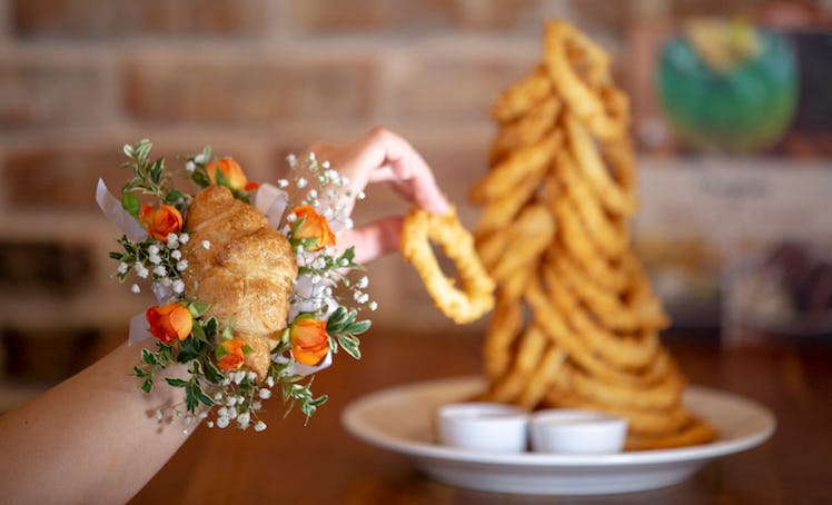 Keep in mind that you won't be picking it up at an actual Cheddar's Scratch Kitchen location, though. According to the company's press release, you'll get your Croissant Corsage at Petals and Stems, the Dallas-based florist that the restaurant partnered with to make the accessories possible.