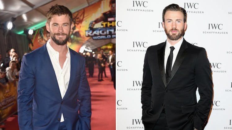 Hemsworth recently sat down to talk with Esquire about the final Avengers movie and, well, yeah... his beard. The publication reports Hemsworth is "proud" his character, Thor, is the first Avenger with a beard and feels Evan's version of Captain America in Infinity War rips off his look. While they're two totally different looks (Thor's beard is shorter, crisp and blonde, and Captain America's is brown, thick, and burley), Hemsworth still feels like he's the OG of Avenger facial hair. He told Esquire, "I’d like to say I was the original, if that means anything. [Chris Evans] certainly, I feel like, copied me. Quite cheaply."