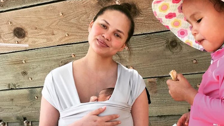I love being a part of Chrissy Teigen and John Legend's family. Don't you? I'm somehow more invested in what their children eat and what baby diapers they sponsor than I am with what's inside my own fridge or on my own butt. Their social media banter is on POINT. That's why it's so much fun when they post family updates — because it feels like it's your family, too. Take Teigen's latest picture of her sweet baby gentleman, for example. Chrissy Teigen's new photo of Miles has me doing a serious double take because he looks so, SO much like his dad, John Legend. It's kind of unbelievable how genes work like that. Ahhh, science.