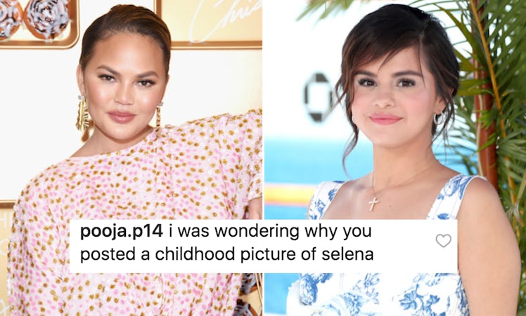 Have you ever done that thing where you spend so much time scrolling through the internet that you start to lose track of what you really saw, what you made up in your mind, and what is real life? That's what it feels like looking at Chrissy Teigen's teenage photo on Instagram. My brain is telling me it's a picture of a super young Teigen, but my heart is telling me I'm looking at Selena Gomez. I know. It sounds wild, but I think once you see the pic you'll agree with me.