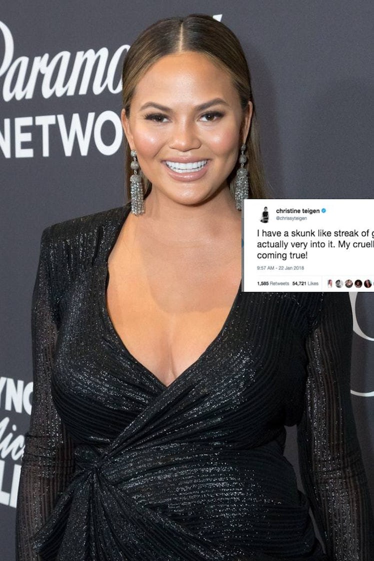 Chrissy Teigen Compared Her "Skunk Like" Looks To Cruella de Vil & Twitter Exploded