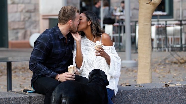 Before he, you know, jumped over the fence, Colton Underwood actually had a pretty nice date with Tayshia Adams. And Colton Underwood and Tayshia Adams' fantasy suite body language onThe Bachelor tells us a lot about how the two are feeling about each other. I spoke to Traci Brown, body language expert and author of Persuasion Point, for all of the details on their physical chemistry during their fantasy suite date.