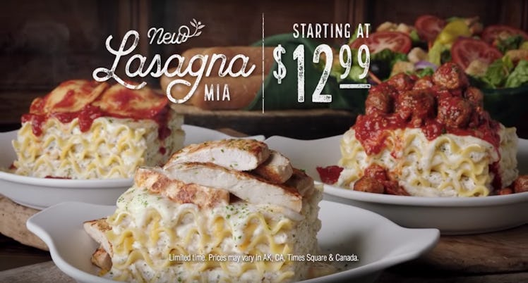 Olive Garden's Lasagna Mia deal is now available in all Olive Garden restaurants nationwide, according to a press release. However, it's only around for a limited time until July 22, so I definitely recommend getting your lasagna fix as soon as possible. I mean, who knows what could happen? Some carb-crazed person (such as myself) might eat all of the Garden's lasagna before it's too late. Then what will you do?