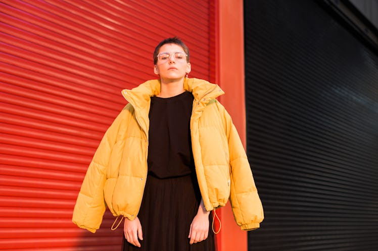 Metallic silver and gold coats can step aside for this bubblegum-hued iteration. Paired with a fuzzy pink hat, it's the sweetest look on the slopes.