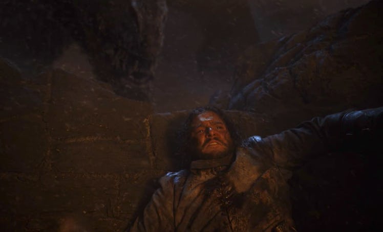 It is not entirely clear whether Jon is just screaming in general or screaming a specific word, but fans on Reddit think Jon is screaming "Go!," and you can definitely hear that upon rewatch. This is important because it suggests that Jon is distracting the dragon in order to allow another person to escape it. Only a few seconds after this scene of Jon screaming, we see Arya sneak-attacking the Night King.