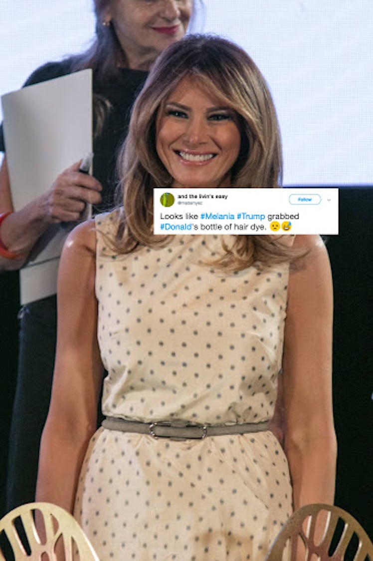 Twitter user @KaraCalavera supposed that perhaps the extreme dye-job was intentional, writing "At least we know that Melania's hair stylist is part of the Resistance."