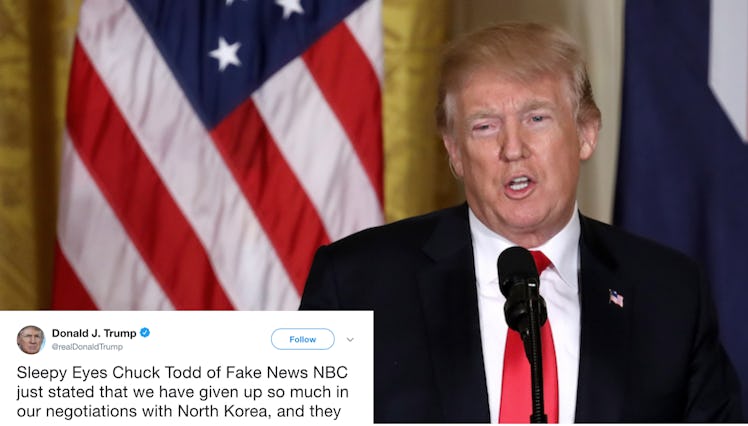 Trump tweeted that North Korea "agreed to denuclearization" on Sunday, April 22, but that's not yet the case. On Friday, April 20, North Korea announced it would immediately cease all nuclear and missile tests in an effort to pursue "growth and peace," according to Reuters. The announcement comes ahead of planned summits with South Korea and the U.S. in the coming months. State-run Korean Central News Agency (KCNA) reported that North Korean leader Kim Jong-un said the tests were no longer needed because the country had completed its weapons-development goals, per Reuters, and he also pledged to close nuclear testing sites.