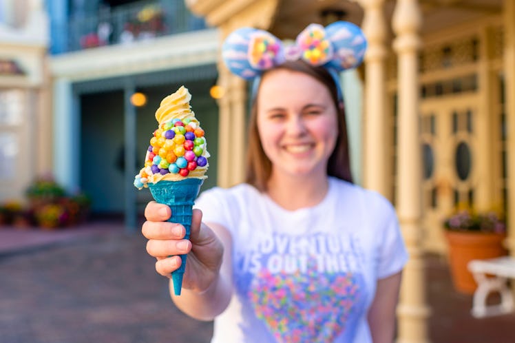 The simplest reimagining of the Dole Whip cone might also be the most unique. Inspired by "Tangled," the Lost Princess cone is currently serving up purple edible flowers at Storybook Treats in Fantasyland. You're basically getting lemon soft serve on a purple cone, but it's still undeniably photogenic. Something tells me the citrus-forward confection is probably pretty similar to the Peter Pan Float, which is made with lime Dole Whip.