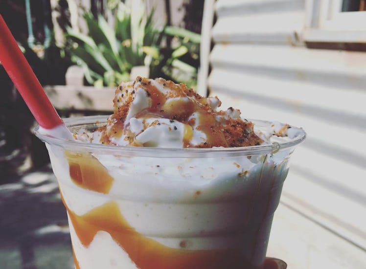 According to a review by blogger Disney Food Blog, you can score one of these bad boys at Flo's V-8 Cafe at Anaheim's California Adventure Park for only $6. Not only does the sweet beverage sound completely delicious — according to Disney Food Blog, they "expected a super pumpkin-y flavor, but it was a richer vanilla with a nice addition of pumpkin spice added in" — but the photogenic frozen sips are also super 'grammable.