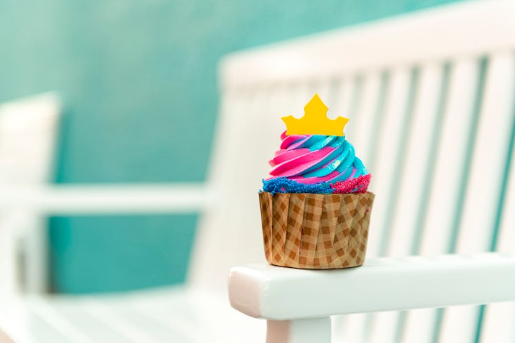 To give the cupcake a big royal finish, Disney World bakers created a white chocolate crown to place atop the mound of buttercream and christened it with edible gold glitter, according to the Disney. Oh, and it's also got a line of blue and pink sprinkles around the base of the frosting. Seriously, this cupcake really goes the extra mile.