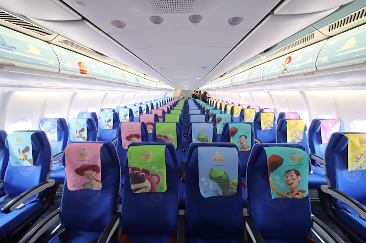 The playful aircraft — which Forbes reports took its maiden voyage on April 28 from Shanghai to Beijing as part of a partnership between China Eastern Airlines and Shanghai Disney Resort — features a colorful mid-flight Buzz Lightyear boldly emblazoned on its exterior. Inside, illustrations of fluffy clouds and characters like Woody, Lotso the bear, and Jessie the cowgirl decorate the overhead baggage compartments and the ceilings, while drawings of classic favorites like Mr. and Mrs. Potato Head, Slinky, and Rex adorn the seats and trays, according to CNN Travel.