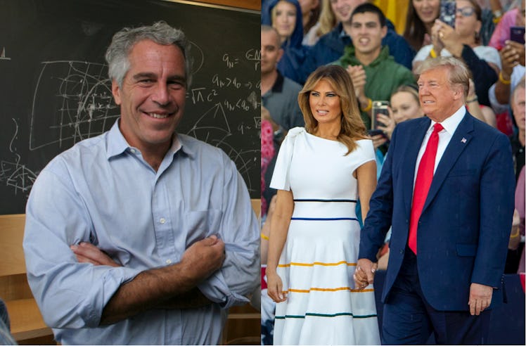 President Trump told reporters on July 9 that he had a "falling out with" Epstein, and that he hasn't "spoken to him in 15 years." Epstein, on the other hand, has reportedly been playing up his connection to the Trumps since the 2016 election, per the Times, in part by reportedly claiming that he was the one who first introduced the pair. Elite Daily has reached out to the White House for comment on whether Epstein played a role in their first meeting but did not immediately hear back.