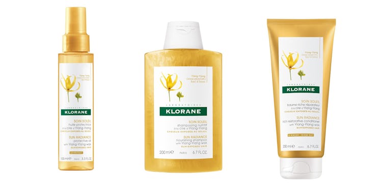 Similarly, the aforementioned Klorane collection harnesses the properties of ylang ylang wax (derived from the namesake flower) to form a seal of protection around the hair shaft and block UV rays. Not only does this coating protect from sunlight, but it also shields hair from other damaging environmental elements including sea, sand, and pool (chlorine) — i.e. all of the spots I plan to hit up on the reg this summer.