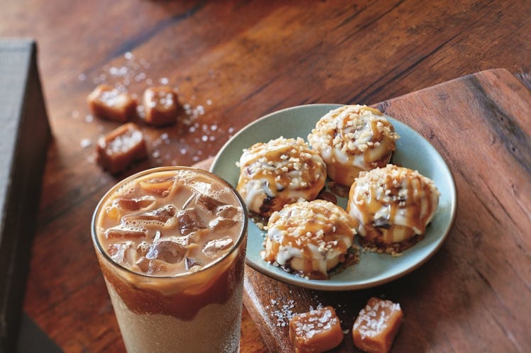 Each cold brew flavor is now available in a 16-ounce cup for $2.99, and in 24-ounces for $3.39. To enhance the coffee-cinnamon roll experience, they recommend adding caramel drizzle and a salty toffee crunch to your cinnamon bun, for just $0.50 more. It'll enhance the coffee flavors, and bottom line: it'll also make everything taste ten times more amazing.