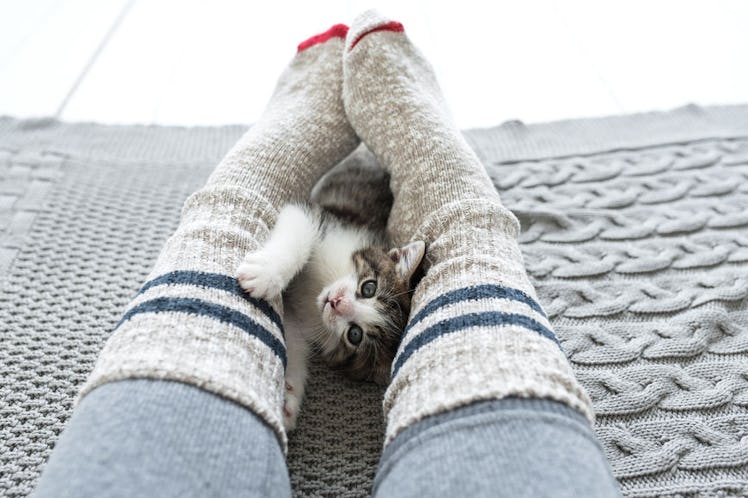 Plus, according to Chelsea Hudson, a therapist at Cityscape Counseling in Chicago, petting your cat doesn't just biologically calm your nervous system. "Simply interacting with your cat can invoke strong feelings of connection," she tells Elite Daily, "which lowers stress because intimate connection leads one to feeling less alone and better able to cope with stress."