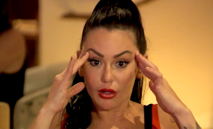 Understandably, not everyone was overjoyed to hear that Snooki invited controversial former roommate Angelina to Las Vegas for the second season of Jersey Shore Family Vacation, and things finally reached a boiling point in Thursday night's new episode, which was aptly titled "Frenemies." Despite her (admittedly not-exactly-great) attempts to patch things up with JWoww, Angelina only succeeds in irritating her even more. JWoww and Angelina have beef dating back to the early seasons of Jersey Shore back in 2009 and 2010, but more recently, the two reopened their rivalry after Angelina called Jenni a "Jersey whore" on Instagram.