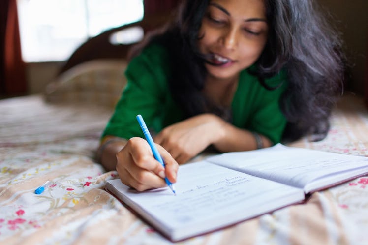 Journaling is just for you, so the important part is just that you write. Huerta stresses that you don't have to worry about grammar or punctuation — just write. Try not to place expectations on yourself and just see what you end up needing to say.