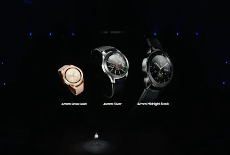 Before Samsung's Unpacked event even took place, there was speculation that a rose gold Galaxy Watch was on its way. Apparently, Samsung may have accidentally leaked a product picture of the pink smart watch on its website on Monday, July 23, per CNET. In fact, a screenshot was taken of the presumably "accidental" posting, which displayed a 42-millimeter rose gold Galaxy Watch. Oops?