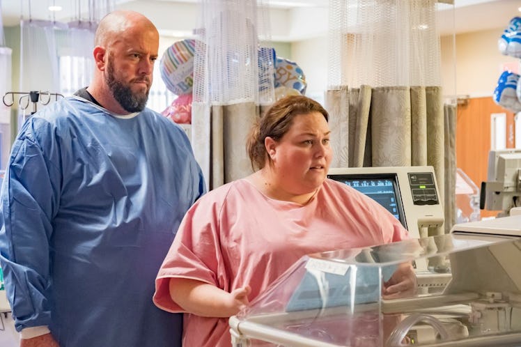 This Is Us may have wrapped until the fall, but that hasn't stopped fans from fixating on theories about the Pearsons' future. The Season 3 finale's flash-forward scene confirmed that baby Jack survived and thrived after his premature arrival, but now there's an awkward, inexplicable wedge between Toby and the rest of the family. Kate's absence from the future moments also still has fans worried about her fate, but Chrissy Metz has her own theory about her character's outcome. Does Toby get remarried on This Is Us? Metz isn't counting out the possibility.