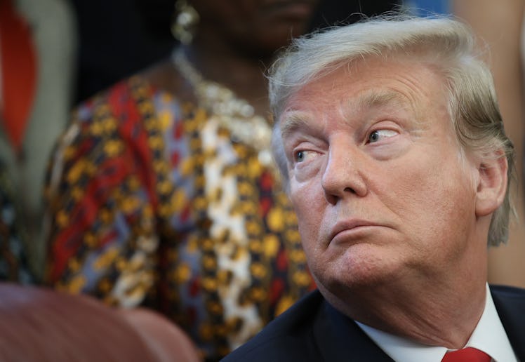 The root of the tweetstorm is a claim made on Feb. 27 by the president's former lawyer Michael Cohen. While testifying on Capitol Hill about a series of Trump's alleged transgressions, Cohen claimed that the president once asked him to contact all of his old schools and threaten them against releasing his SAT test scores and grades, providing a letter to lawmakers that supported his claims. In a statement to Newsweek, White House Press Secretary Sarah Huckabee Sanders said that it was "laughable that anyone would take a convicted liar like Cohen at his word." The White House did not respond to Elite Daily's request for specific comment regarding the letters to Trump's schools. However, for what it's worth, a representative of Trump's alma mater Fordham University confirmed to Elite Daily by email that the university had received a call about the school records as well as a letter threatening legal action if they were released.