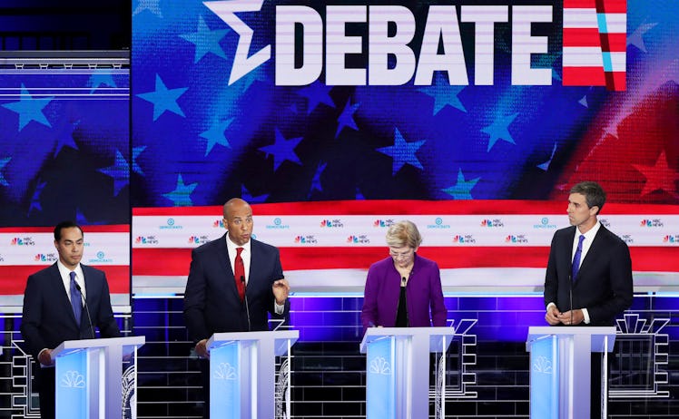 The first debate was split into two nights and run jointly by NBC News, MSNBC, and Telemundo. Shortly after 10 p.m. ET on the first night, June 26, the Democratic debate switched over its moderators, allowing Chuck Todd and Rachel Maddow to take over asking questions of the 10 candidates on stage. While the transition in questioning went smoothly, the transition in microphones —well, didn't. When Todd began his opening question to Sen. Elizabeth Warren of Massachusetts, the echo of the miscalibrated mics nearly drowned him out. Meanwhile, Warren's attempt at an answer was nearly inaudible. The network quickly cut to commercial while the technical teams fixed everything before coming back to business. It was a humanizing error for a group of politicians each seeking to put their best foot forward, and everyone on stage seemed to take it in good stride.