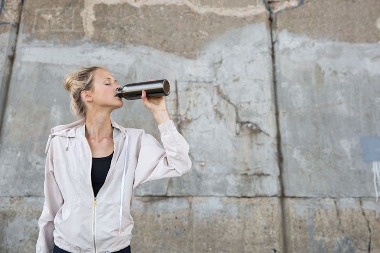 But if prepackaged bevs aren't really your thing, you can easily make your own post-workout drink at home by blending your favorite fruit and protein powder with milk, juice, or water, according to LIVESTRONG. If that's something you want to try, the International Society of Sports Nutrition recommends using whey protein in your recipe, as it "provides a distinct advantage over other protein sources." But if that doesn't sit well in your stomach, you can always experiment with plant-based protein powders, as well.