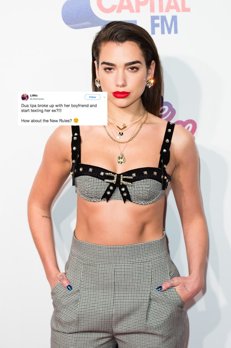 This summer was filled with all sorts of girl-power, breakup-themed pop anthems. There was Lorde's "Green Light," Kygo and Selena Gomez's "It Ain't Me," and my personal favorite, Dua Lipa's "New Rules." Outside of the ultra chic music video that made me want to move to Miami with my BFFs and only wear pastels for the rest of our lives, the song's inspiring lyrics are what I'm sure many young women have to thank for a significant decrease in late-night "miss u" texts sent to our exes. But alas, Dua Lipa is reportedly talking to her ex.