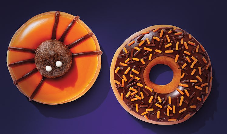In an Oct. 1 press release, Dunkin' announced the return of the Spider Donut to the restaurant's menu in October. The popular donut captures the spirit of the frightening holiday in one sweet treat — it's frosted with orange icing and topped with an "eight-legged donut creature." The donut creature will be terrifyingly delicious to eat: You'll be chowing down on a Glazed Chocolate Munchkins Donut Hole treat with chocolate drizzle for the spider legs and white or orange icing for the eyes. You can also score a 10-count of Munchkins for $2 all October long.