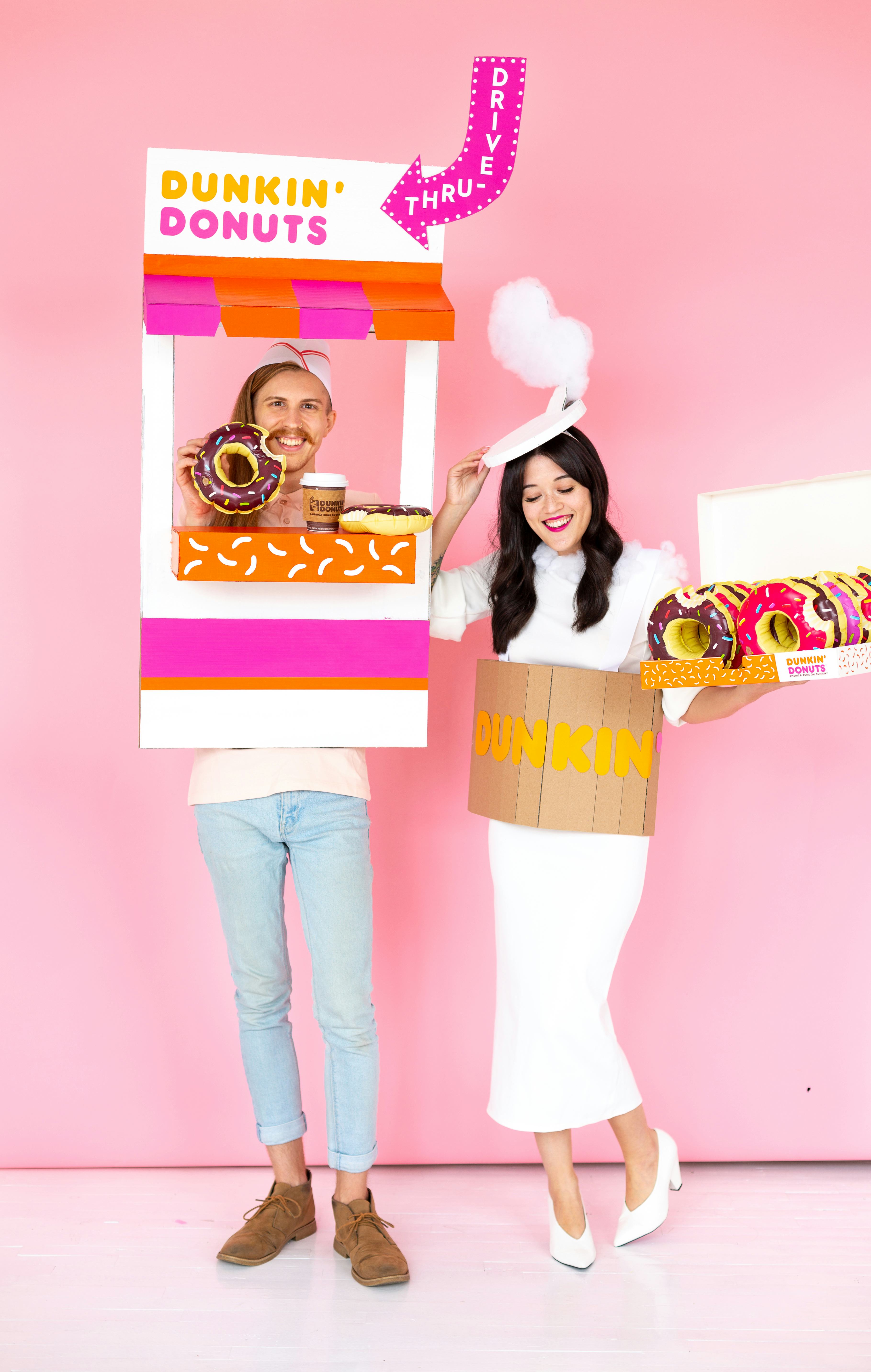 Just one word of caution before letting your imagination run wild: DD recently changed its name to just "Dunkin'" (yes, I'm still in denial), so you might want to keep that in mind as you cover your costume with the iconic pink and orange colors that you've come to love.