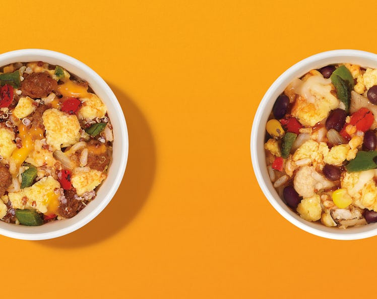 I, personally, have my sights set on the Fire Roasted Veggie Bowl. According to the press release, it combines a hearty base of eggs, cauliflower, brown rice, Monterey Jack cheese, and gooey pepper jack cheese, with a medley of of fire-roasted vegetables, which include: onions, red and green bell peppers, corn, and black beans. All of that is then drizzled in a hefty splash of Chipotle Sauce, so brace yourselves for a little kick.