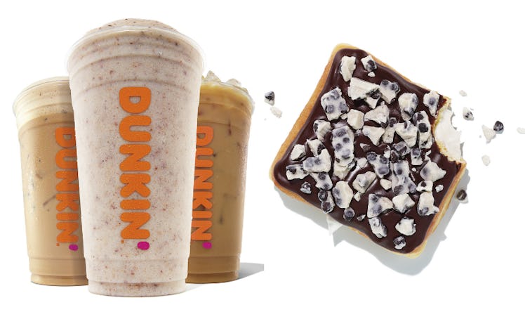 Now, if you're looking to fuel up while getting your candy fix or you just want a socially acceptable way to consume sweets for breakfast, I'd check out the company's new flavored coffees that feature notes of Heath Bars or Cookies 'N Creme. You can get the flavors of the Heath's milk chocolate and English toffee or the indulgent white chocolate and cookie notes of the Cookies 'N Creme in a variety of different beverages, including Dunkin’s hot and iced coffee, espresso beverages, frozen coffees, and frozen chocolates, according to press materials.