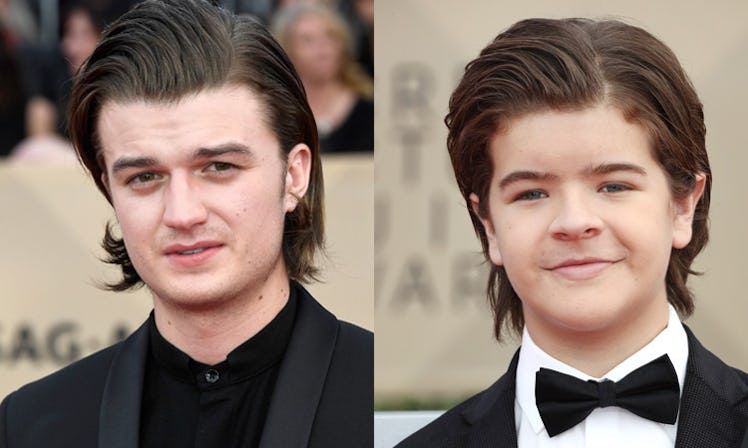 Well, clearly, it wasn't only Dustin who jotted down Steve's haircare tips, but also Gaten Matarazzo himself. Both Joe Keery and Matarazzo showed up to the SAG Awards on Sunday night rocking similar slicked-back, mid-length hair. Although the two stars don't play related characters on Stranger Things, their adorably, warm bond over this past season led to fans jokingly referring to them as family members, and they clearly played into the family resemblance on the red carpet. Check out the pics of Keery and Matarazzo with matching hair below: