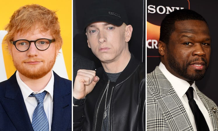 At this point, I don't even know why I'm surprised by certain music collaborations anymore. Admittedly, I didn't see Ed Sheeran, Eminem, and 50 Cent coming. 50 and Em, to me, are of a different time. They wrote my go-to jams when I used to ride the school bus. I can remember being in 8th grade and it was Rachel's 14th birthday so we all sang "Go Shorty, It's Your Birthday" until the bus driver yelled at us. Still, here we are. Ed Sheeran, Eminem, and 50 Cent's "Remember The Name" lyrics might also withstand the test of time, and somewhere, an 8th grader might be singing the hit as we speak.