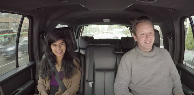 In this particular episode, 25-year-old Mahima gets into the car first. She's a bit caught off guard, but then pretty quickly puts her game face on and agrees to participate, That's when Alex, 30, hops in. Both Alex and Mahima look nervous — because, yes, having a first date filmed in the back of a car is very nerve-inducing — and it's very sweet.