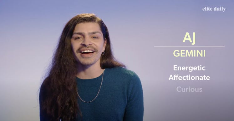 Craving a dose of romance with a side of astrology? Episode 5 of Star Crossed, Elite Daily’s dating astrology show, is just what you need. Every episode features one single dater who goes on mini-dates with a handful of astrologically compatible matches, and has to decide — on camera — who they’d like to see again. On the Aug. 4 episode, the pressure is on for AJ, a queer, 25-year-old writer, producer, and performer in New York City. As a Gemini, he knows he has a tendency to want to people-please, and confesses that dates tend to friend-zone him because of it. He’s hoping to find someone with whom he can establish boundaries early on, and is ready to reject dates he doesn’t feel a connection with.