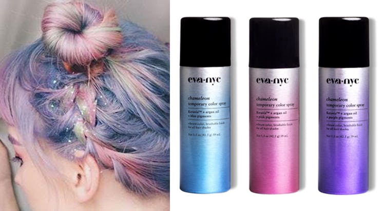 Considering I just had pink hair last week, I feel confident in saying the whole pastel hair trend isn't dying down anytime soon. While people are still loving the look, though, not everybody is a fan of the color upkeep and the long-term damage that can sometimes come from excessive bleaching. Cue easy-to-use temporary tint products like Eva NYC's new Chameleon Color Sprays, which give you a trendy look in just a few spritzes that you don't have to commit to for ages. The brand just launched three gorgeous shades, and I'm thisclose to buying the whole trio and going full pastel unicorn rainbow.